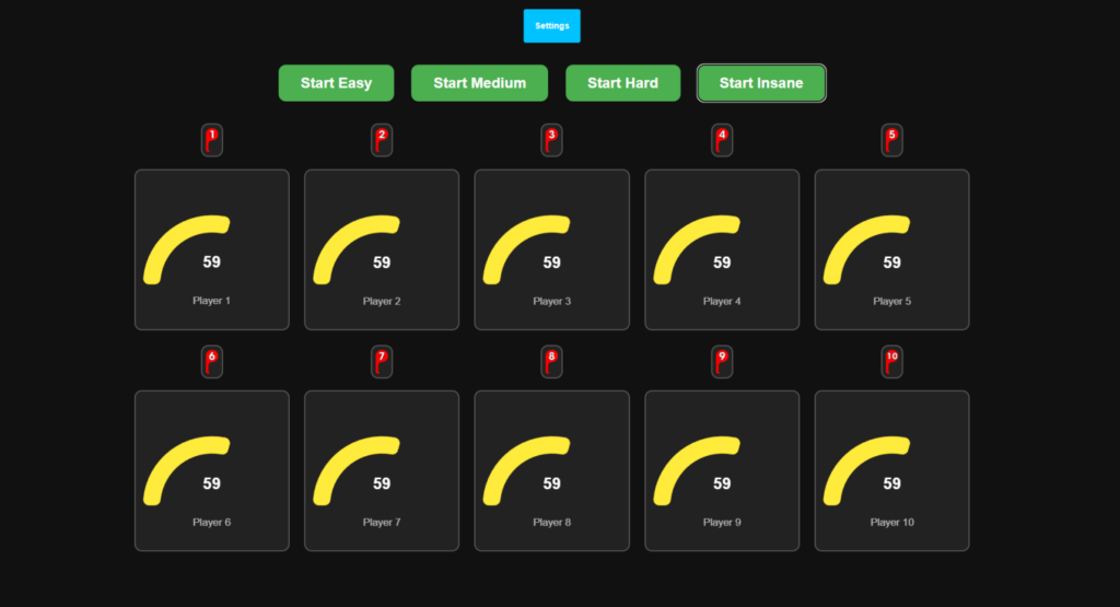 You all have 100% health, but its ticking away. Kick to keep alive! 4 levels, slower timer is more endurance. Faster timer needs fast kicking and more intense !